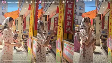 Sarwendah juga bersenang-senang dengan penjual es krim khas Turki yang kerap mengecoh pembelinya dengan trik-trik usil. Bahkan, wanita itu sempat mengusili balik dengan memakan cone es krim milik penjual es krim tersebut.