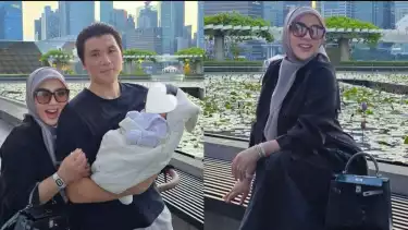 Dalam momen kebersamaan keluarga kecilnya yang ia bagikan melalui Instagram Story, terlihat Syahrini masih mengenakan tas mewah saat membawa Baby R jalan-jalan bersama Reino Barack.