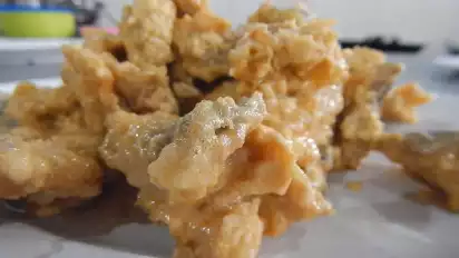 "Ya beginilah kalau telur asin digoreng lalu diaduk dengan minyak panas, akan membuih dan nanti akan jadi kayak tekstur mirip pasir yang akan menutup permukaan bandeng," kata Pak Gun, pengelola rumah makan.