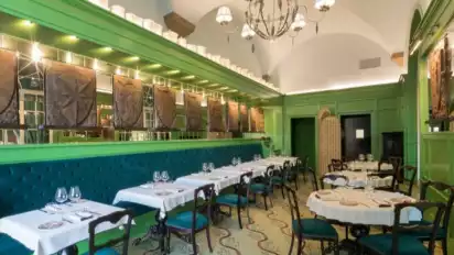 Ruang makan utama memiliki 28 kursi dengan kursi beludru berwarna biru dan meja ebonized, sedangkan teras luar ruangan memiliki 36 kursi. Ada pula ruang makan privat yang dapat menampung hingga delapan tamu.