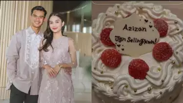 Namun yang mengejutkan di sana ialah saat para sahabat Azizah Salsha memberikan kue bridal shower dengan tulisan 'Azizah jgn selingkuh!'.