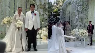 Momen yang paling mengharukan terjadi ketika ayah Amanda, Ramon Gauna Lugue mengantar sang putri menuju altar.