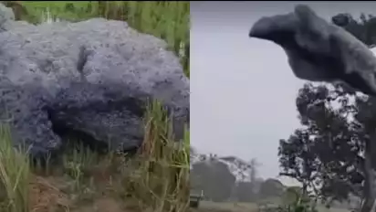 Namun beberapa video menunjukkan yang diduga awan hitam itu, bisa terjatuh ke tanah di area pemukiman masyarakat.