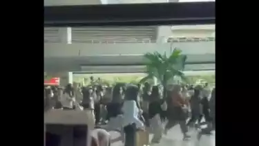 Video yang berdurasi 13 detik itu memperlihatkan segerombolan orang yang sedang berlari di suatu tempat yang mirip bandara.
