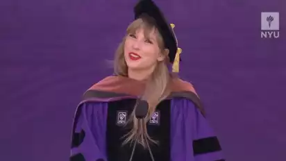 "Saya enggak pernah merasakan kuliah. Saya sekolah sampai kelas 10 dan kemudian menyelesaikan PR homeschool saya di lantai bandara," kata Swift dalam pidatonya.