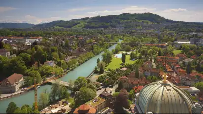 Berdasarkan keterangan unggahan video dari Syarif Zapata bahwa bagian sungai Aare ini berada di Kota Thun.