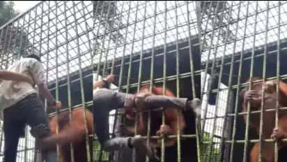 Jakarta - Viral demi konten, akhirnya seorangpria ditarik orangutan karena lewati pagar pembatas Kebun Binatang, Kini klarifikasi minta maaf atas kejadian tersebut, Kamis (9/6/2022)