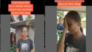 Dalam video yang memperlihatkan seorang ibu muda yang memegang uang sepuluh ribu, lalu disuruh lakukan reka ulang di hadapan pemilik rumah dan warga lainnya.
