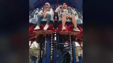 Terlihat kepanikan dari kedua pengunjung tersebut karena sudah melepas sabuk pengaman yang mereka pakai, keduanya pun terlihat sibuk memasang kembali sabuk pengaman tersebut.