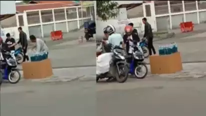 "Ada tukang bensin, berdagang di pom bensin, cuma ada di pom bensin leuwigajah,"ucap pria yang yang merekam video tersebut dikutip tvonenews.com
