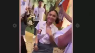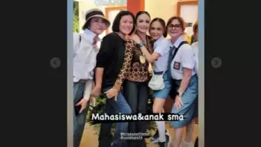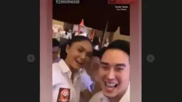 Pada tayangan video di IG Story, Yuni Shara tampak berjoget lincah di saat menggunakan seragam SMA.