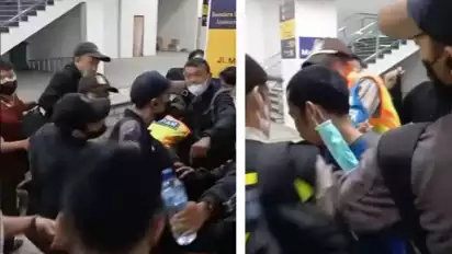 Jakarta - Beredar sebuah video di media sosial yang menunjukan seorang pria yang diduga copet di Kereta Rel Listrik (KRL) Commuter Line tengah diamankan petugas keamanan dari amukan massa di stasium manggarai.