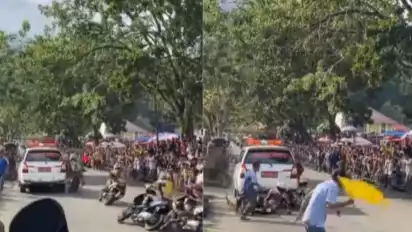 Kejadian itu diunggah oleh akun Instagram @say.viideo yang memperlihatkan suasana balapan di jalanan yang dipenuhi sejumlah penonton di pinggir jalan.