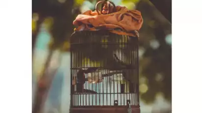 Sang pelaku nekat mencuri burung beserta sangkarnya hanya dengan memanjat pagar. Ia berhasil mengambil sangkar burung tersebut dengan keadaaan miring.