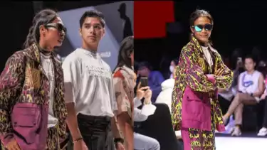 Tak tampal malu bergaya di depan banyak orang dan pasang mata, Bahkan dalam beberapa kesempatan dirinya sempat bereaksi dengan memutar di sudut catwalk seraya menebarkan senyuman terbaik pada para pengunjung yang menyaksikan.