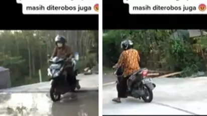 Viral Video Seorang Pengendara Motor Dengan Santai Melintasi Jembatan yang Sedang Diperbaiki, Netizen: Miris Lihatnya