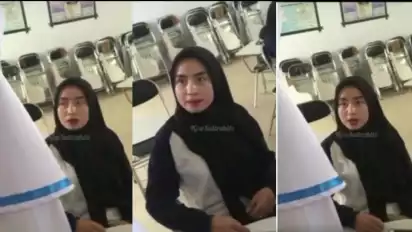 Dalam unggahan video itu memperlihatkan seorang mahasiswa berjilbab warna hitam tengah duduk di bangku khas perkuliahan di sebuah ruangan kelas.