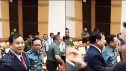 Lalu, terekam momen saat Effendi Simbolon tampak bersalaman dengan Menhan Kabinet Indonesia Maju. Prabowo Subianto tampak tersenyum dan tertawa, keduanya tokoh ini terlihat saling melempar tos dan Prabowo melontarkan guyonan. "Bikin pusing aja," ucapnya diikuti tawa.