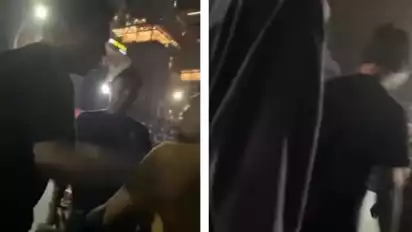 Bahkan pemuda tersebut terlihat kesal bahakan hingga mendorong-dorong pedagang tersebut dan menyuruhnya untuk pergi dari kawasan tersebut dan mencari tempat lain untuk berjualan.