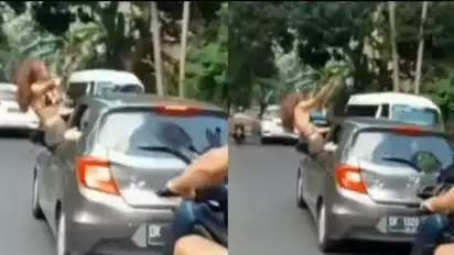 Viral Aksi Bule Ugal-ugalan Joget Keluarkan Badan di Kaca Mobil, Menuai Sorotan Netizen