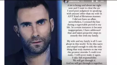 ¨Dalam hal tertentu menjadi tidak pantas, saya telah mengatasinya dan mengambil langkah proaktif untuk memperbaiki hal ini dengan keluarga saya," bunyi unggahan Adam Levine.