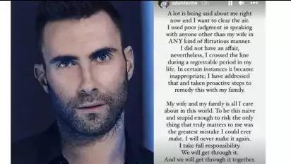 Melalui unggahan Instastory di akun Instagramnya @adamlevine pada Selasa (20/9/2022), Adam Levine mengungkapkan bahwa dirinya sangat menyesali perbuatannya tersebut. Namun, dia menepis bahwa telah berselingkuh dari Behati Prinsloo.