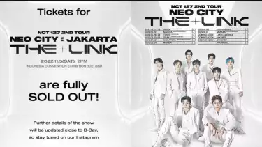 "THANK YOU NCTZENS FOR THE ENTHUSIASM AND THE MASSIVE SUPPORT! Tickets for NCT 127 2ND TOUR 'NEO CITY : JAKARTA – THE LINK' are fully SOLD OUT! Further details of the show will be updated close to D-Day, so stay tuned on our Instagram," tulisnya.