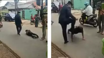 "Ya gak di injek juga kali pak menghukumnya yaa tau deh sepatunya mahal yaa," komentar salah satu netizen.