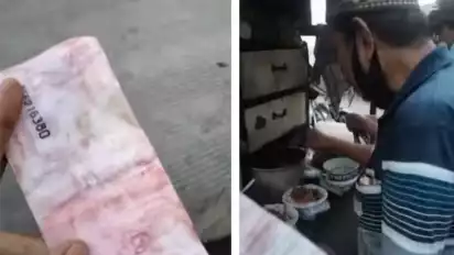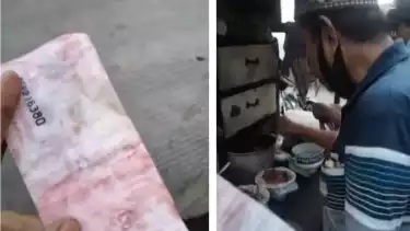 Perekam video yang mengaku sebagai anak dari pedagang mie ayam tersebut mengtakan jika ayahnya menerima uang dari senilai Rp100 ribu itu dari salah satu pelanggan yang membeli dagangannya.
