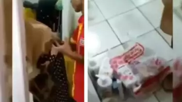 Ibu itu pun langsung menunduk dan mengeluarkan barang-barang yang ia curi yang ia siman kedalam tas yang ia bawa, pada video tersebut terlihat sejumlah barang mulai dari sabun hingga makanan.