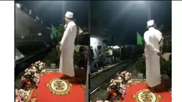 Dalam video tersebut, tampak para warga yang menggelar pengajian di sekitar rel kereta api. Terlihat seorang ustaz yang memakai pakaian putih langsung berdiri sambil memegang microphone setelah terlihat kereta api segera melintas tepat di depan panggung.