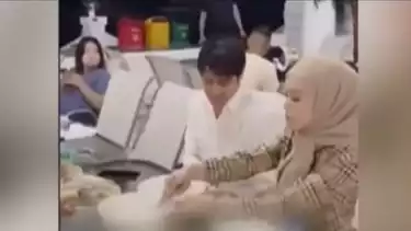 Di video itu, Lesti Kejora tampak duduk di sebelah Rizky Billar, dan ekspresi Billar pun tampak senang dengan perlakuan sang istri yang mengambilkan nasi untuknya.