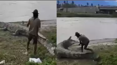 Kemunculan buaya besar tersebut mengundangan perhatian warga sekitar untuk mencoba merekamnya. Mulanya buaya tampak berdiam diri di pinggir sungai, kemudian seorang pria muncul dan nekat mendekat buaya tersebut.