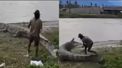 Viral! Seorang Pria Nekat Mengelus-elus Buaya Hingga Nyaris Meregang Nyawa, Netizen: Seketika Kena Mental