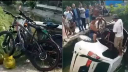Maling sepeda pakai mobil dikejar warga dan mobilnya malah tercebur ke Sungai.
