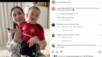 Dari pantauan tvonenews.com, akun Instagram Manchester United dengan lebih dari 60 juta followers itu, mengunggah foto Rayyanza Malik Ahmad sedang mengenakan jersey MU musim 2022-2023, yang ditemani Nagita Slavina.
