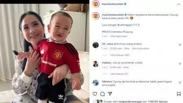 Jakarta - Foto putra kedua pasangan Raffi Ahmad dan Nagita Slavina, Rayyanza yang akrab disapa Cipung, diunggah oleh akun Instagram resmi milik club sepak bola ternama di dunia, yakni Manchester United (MU).