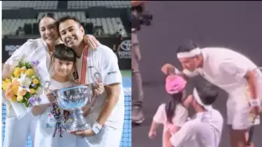 Klaim Juara Tiba Tiba Tenis, Jadi Sorotan Momen Raffi Ahmad Hampiri dan Cium Kening Buah Hati Desta.