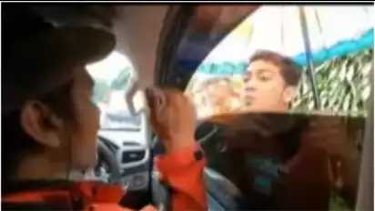 Tampak relawan yang berada di dalam mobil, saling beradu argumen dengan warga yang mengadangnya. Relawan memberikan alasan barang bantuannya tersebut untuk daerah yang sulit dijangkau.