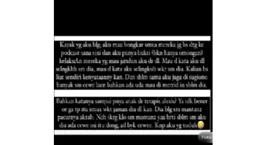 “Mau di kata aku dl selingkuh sm dia, mau di kata aku selingkuh wakt sm dia. Kalian bs liat sendiri kenyataanny kan. Dan sblm sama aku juga di Sugiono banyak sm cewe laen bahkan ada uda mau di merrid in sblm dia,” lanjutnya.