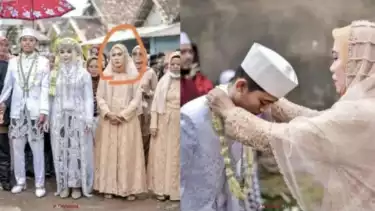 Potret pernikahan Risma dan Suami (kiri), Sang ibunda yang mengalungi ronce melati kepada suami dari Risma (kanan). (ist)