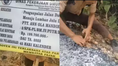 Viral Proyek Aspal yang Diduga Abal-abal Usai Dicongkel Pakai Tangan, Anggaran RP200 Juta Tuai Sorotan Netizen