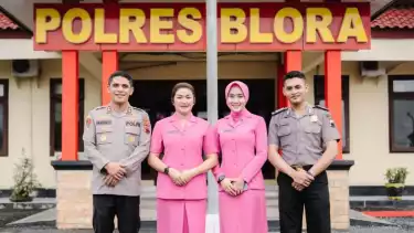 Blora, Jawa Tengah - Ada yang berbeda pada pelaksanaan upacara kenaikan pangkat anggota Polres Blora, Polda Jawa Tengah, Selasa (3/2/2023) di halaman depan Polres Blora. Yaitu kehadiran artis cantik Yeni Inka pada kegiatan tersebut.