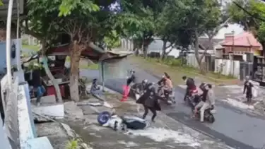 Dalam unggahan video viral itu yang terekam CCTV, memperlihatkan seorang warga terburu-buru memakirkan motornya dan berlari ke rumah atau gang untuk mengamankan dirinya.