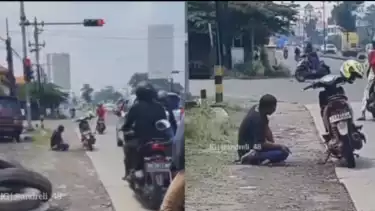 Viral! Pengendara Motor Menepi Buat Salat di Pinggir Jalan saat Lampu Merah