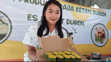 Jombang, tvOnenews.com - Banyaknya durian di Wonosalam Jombang, membuat warga yang tinggal di wilayah subur dataran tinggi tersebut kaya inovasi. Diantaranya dilakukan oleh Alina Dini, 24 tahun, warga Desa Panglungan, Kecamatan Wonosalam, yang membuat inovasi baru kue ketan durian. Perpaduan pulennya ketan yang disiram legitnya fla durian, menjadikan olahan durian ini nikmat untuk tambahan berbuka puasa.