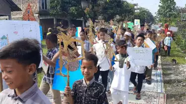 Selain membawa 144 tokoh wayang kulit, siswa juga membawa berbagai poster bertema Ramadhan yang dibawa berkeliling kampung sejauh 3 kilo meter. Ada juga yang membawa miniatur gamelan dan wayang berukuran besar dengan tinggi 3 meter.