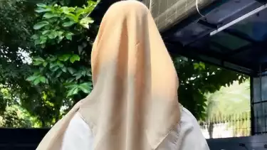Cara hijab yang dia gunakan tetap sederhana. Hanya kerudung segiempat yang dikaitkan dengan peniti.