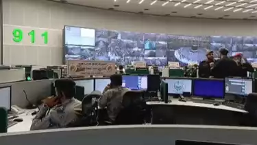 Di control room 911, tampak monitor besar yang memperlihatkan kondisi Kota Makkah yang terekam dari ribuan kamera CCTV.