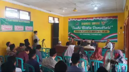 Puluhan santri dan pengasuh pondok pesantren mengikuti diskusi pendidikan pemilih